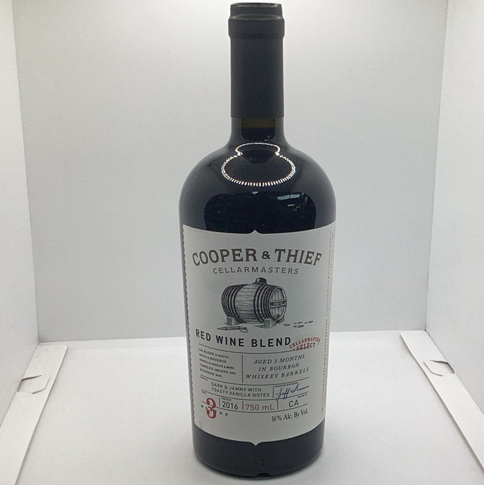 Cooper & Thief Bourbon barrel-aged Red Blend offers a swirl of warm toasty vanilla notes, with dark fruit and a gentle hint of classic bourbon spice. Blackberry and jammy dark currants lead to a rich finish, with the elegance of a fine sipping bourbon