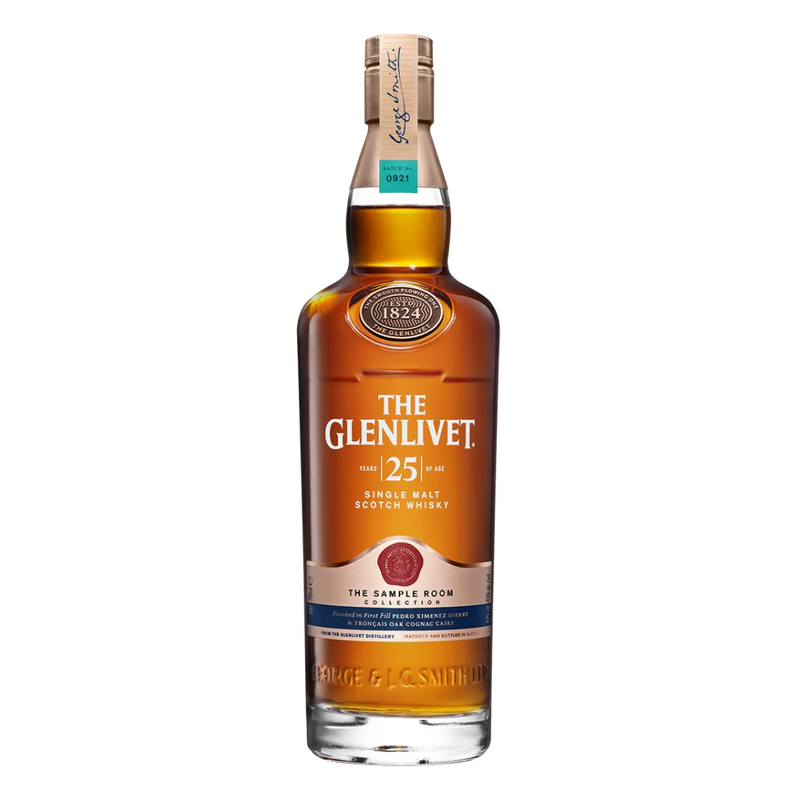 This exquisite 25 years old expression has been created by selectively finishing our whisky across first-fill Pedro Ximénez Sherry and Tronçais Oak Cognac casks, bringing indulgent richness to the iconic smooth and fruity house style of The Glenlivet.