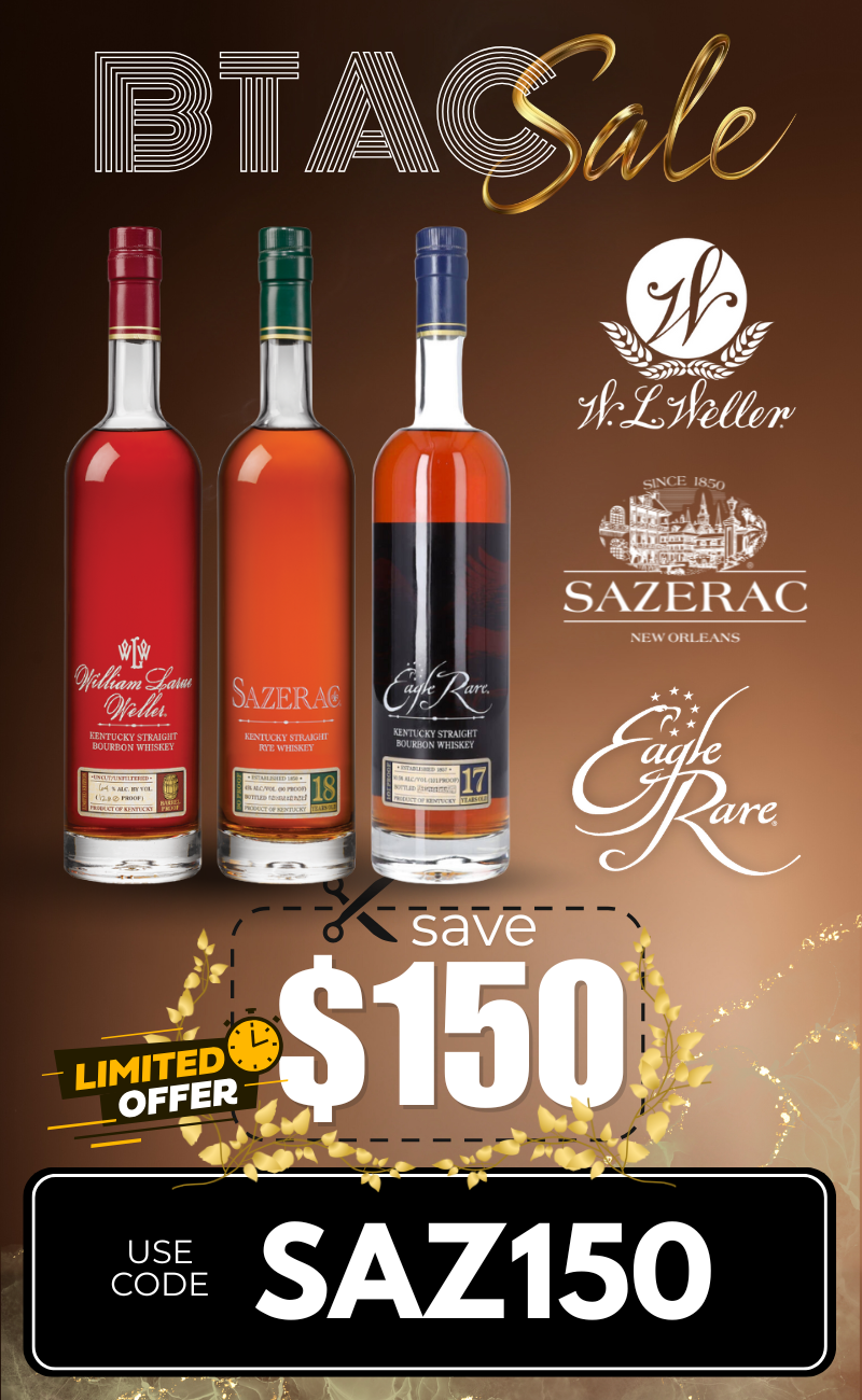 December 19 - BTAC 2025 Sazerac 18 Year Rye Whiskey 2025 Release 750ml $1,299.99 Shop now Sazerac 18 Year Rye Whiskey 2024 Release 750ml $1,299.99 Shop now Sazerac 18 Year Rye Whiskey 2023 Release 750ml $1,299.99 Shop now Sazerac 18 Year Rye Whiskey 2022 Release 750ml $1,299.99 Shop now Eagle Rare 17 Year Bourbon Whiskey 2025 Release 750ml $1,599.99 Shop now Eagle Rare 17 Year Bourbon Whiskey 2024 Release 750ml $1,599.99 Shop now Eagle Rare 17 Year Bourbon Whiskey 2023 Release 750ml $1,599.99 Shop now Eagle Rare 17 Year Bourbon Whiskey 2022 Release 750ml $1,599.99 Shop now William Larue Weller Bourbon Whiskey 2025 Release 750ml $1,499.99 Shop now William Larue Weller Bourbon Whiskey 2024 Release 750ml $1,499.99 Shop now William Larue Weller Bourbon Whiskey 2022 Release 750ml $1,499.99 Shop now George Dickel 21 Year DLW Single Barrel Pick 750ml $89.99 Shop now Eagle Rare 10y DLW Store Pick Bourbon Whiskey 750ml $89.99 Shop now Garrison Brothers DLW Single Barrel Cask Strength Bourbon Whiskey 133 Proof 750ml $199.99 Shop now Don Julio Reposado DLW Private Cask Tequila 750ml $59.99 Shop now No longer want to receive these emails? Unsubscribe. Don's Liquors & Wine 1053 E. Capitol Express Way San Jose, Ca 95121