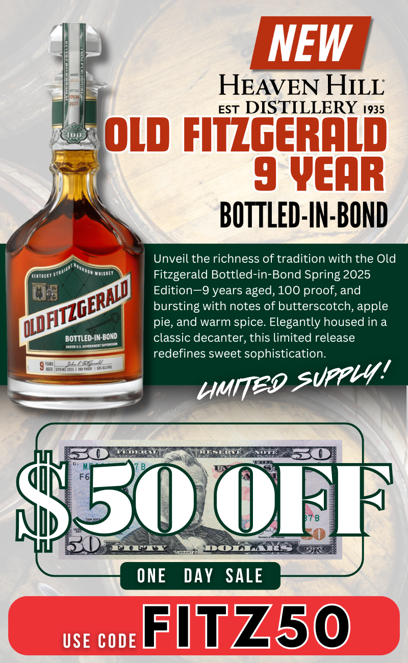 Saturday, June 21 2025 Old Fitzgerald 9 Year Old Fitzgerald Bottled In Bond 2025 Spring Release 9 Year 750ml $479.99 Shop now Fiddler Soloist Cask Strength Bourbon Whiskey 750ml $79.99 Shop now Garrison Brothers Red White & Blue Small Batch Bourbon 750ml $79.99 Shop now Angels Envy Triple Oak Finished Bourbon Whiskey 750ml $79.99 Shop now Stagg Bourbon Whiskey Barrel Proof Unfiltered 125.9 Proof 23C 750ml $249.99 Shop now Eagle Rare 10 Year Kentucky Straight Bourbon Whiskey 750ml $98.99 Shop now E.H. Taylor Small Batch Bourbon Whiskey 750ml $114.99 Shop now W.L. Weller Special Reserve Bourbon 1L $98.99 Shop now Bulleit Bourbon 10 Year Old $44.99 Shop now Michter's US1 Barrel Strength Rye Whiskey 750ml $169.99 Shop now Gentleman's Cut Kentucky Straight Bourbon Whiskey $79.99 Shop now Good Money Canadian Rye Whisky 10 Year Limited Release 750ml $86.99 Shop now SirDavis Straight Rye Whisky 750ml $74.99 Shop now 818 Eight Reserve Anejo Tequila 750ml $199.99 Shop now Gran Coramino Anejo Tequila $114.95 Shop now No longer want to receive these emails? Unsubscribe. Don's Liquors & Wine 1053 E. Capitol Express Way San Jose, Ca 95121