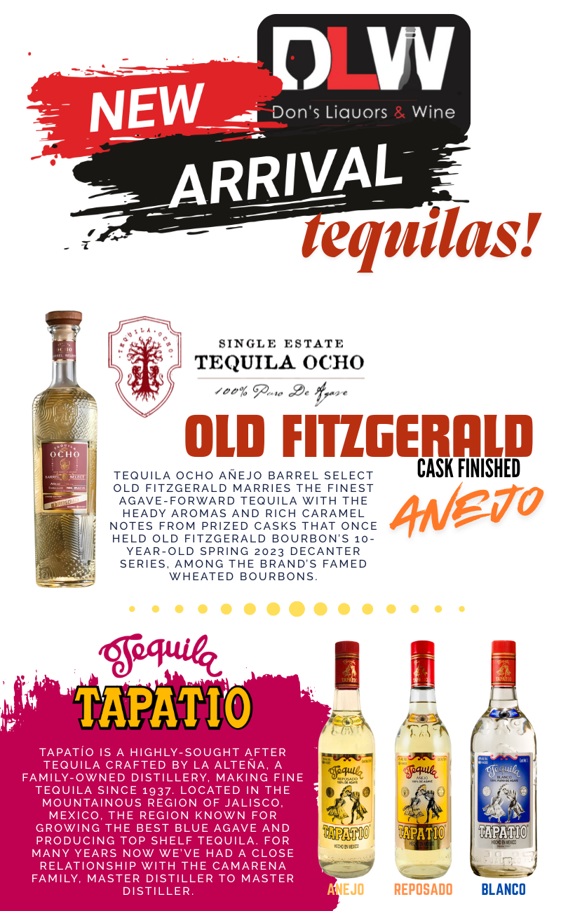 Wednesday, May 7 2025 New Tequila Arrivals Tequila Ocho Old Fitzgerald Cask Limited Edition Anejo Tequila 750ml $149.99 Shop now Tequila Ocho Tequila Anejo Single Estate 80 750ml $86.99 Shop now Tequila Ocho Tequila Plata 80 750ml $38.99 Shop now Tapatio Anejo Tequila 750ml $66.99 Shop now Tapatio Reposado Tequila 750ml $54.99 Shop now Tapatio Blanco Tequila 750ml $46.99 Shop now Don Fulano 20th Anniversay Anejo Tequila 750ml $199.99 Shop now El Destilador Blanco Tequila 750ml $19.99 Shop now El Destilador Reposado Tequila 750ml $24.99 Shop now El Mexicano Blanco Tequila 750ml $42.99 Shop now El Mexicano Reposado Tequila 750ml $46.99 Shop now Milagro Silver Tequila 750ml $29.99 Shop now Milagro Cristalino Anejo Tequila 750ml $62.99 Shop now El Cristiano Reposado Tequila 750ml $49.99 Shop now El Cristiano Silver Tequila 750ml $39.99 Shop now No longer want to receive these emails? Unsubscribe. Don's Liquors & Wine 1053 E. Capitol Express Way San Jose, Ca 95121