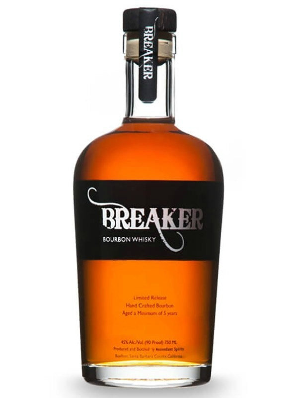 Named for the waves at El Capitan and other local beaches, Breaker Hand Crafted Bourbon Whiskey is made from a mashbill of corn, rye and malted barley before being aged for a minimum of five years in new American oak barrels. Once mature, the whiskey is blended from just eight barrels per batch, giving it a nose of vanilla, candy corn, cinnamon and a touch of smoke. The palate is filled with caramel, taffy and graham crackers, and leads to an extremely smooth finish accented by honey and chocolate chip cookies.
